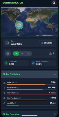 Engage with this simulation to better understand the challenges and opportunities that lie ahead in our quest for a sustainable future. Your decisions matter, and their effects will unfold over time, shaping the world we live in.
