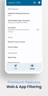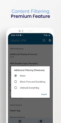 Liberty VPN goes beyond standard VPN services by offering additional content filtering options: