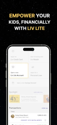 Enable your children and dependents to manage their finances with the Liv Lite app. This feature includes a digital wallet and personal debit card, allowing them to have their own bank account while you maintain control through the Liv X app. It's a great way to teach financial responsibility while ensuring their safety.