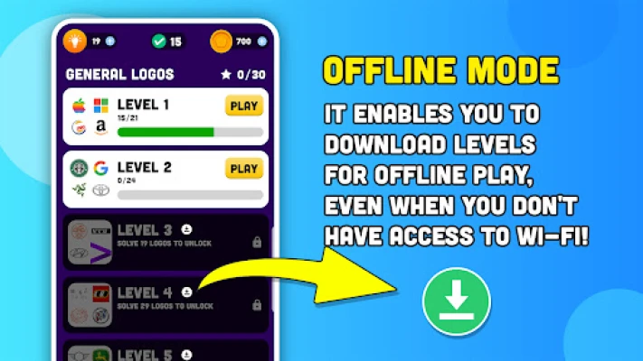 Planning a trip and in need of an engaging game to keep you entertained on the go? Look no further! The Logo Quiz Game includes an offline mode, allowing you to download levels and play without an internet connection. Whether you're on a long flight or enjoying a road trip, you can dive into the fun without worrying about Wi-Fi access!