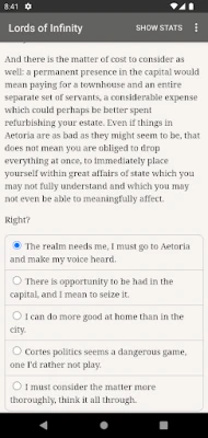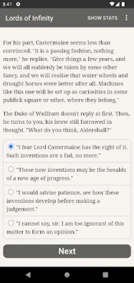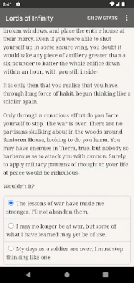 In "Lords of Infinity," players navigate a richly woven tapestry of choices and consequences. The absence of visual elements allows for a deeper engagement with the story, as you envision the characters, settings, and events in your mind. This interactive novel challenges you to think critically and creatively, making each choice a pivotal moment in your journey.