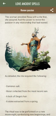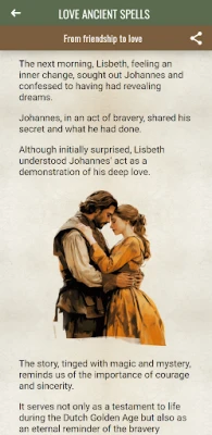 Visual storytelling plays a crucial role in our app. Each tale is complemented by intricately designed graphics that bring the narratives to life. These beautiful illustrations not only enhance the reading experience but also serve as a visual feast that captures the essence of each spell and its historical backdrop. Enjoy the artistry that accompanies the magic of love!