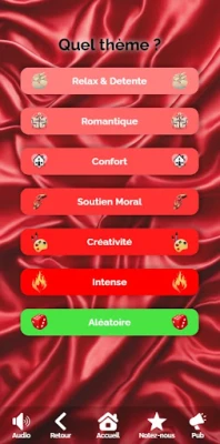 - Varied Themes: Choose from themes like Relax & Unwind, Romantic, Cozy, Moral Support, Creative, and Intense, or let chance decide your next adventure!