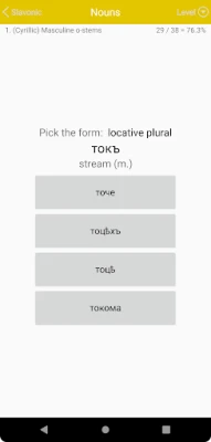 In today's fast-paced world, your smartphone can transform idle moments into valuable learning opportunities. With just a few taps, you can engage in a continuous, interactive quiz that enhances your understanding of Old Church Slavonic vocabulary and grammar. This innovative approach not only provides immediate feedback on your answers but also reinforces your knowledge through repetition, making learning both effective and enjoyable.