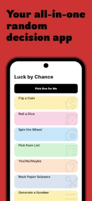 Are you often caught in a whirlwind of indecision? Whether you're struggling to choose a restaurant, deciding on a game to play, or simply need a nudge in the right direction, Luck by Chance is here to help! This innovative app offers a variety of fun and engaging features that make decision-making a breeze. Let’s explore how this app can transform your daily choices.