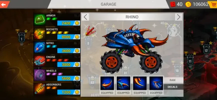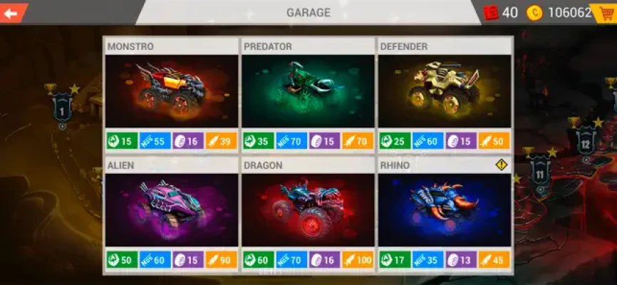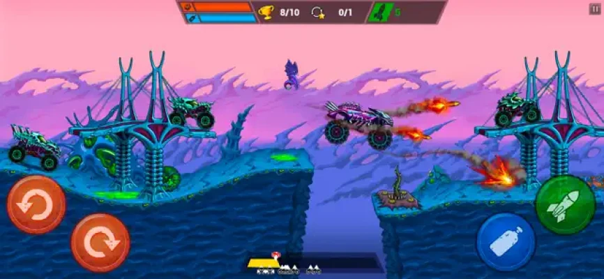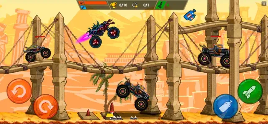 Collect coins to customize your 2D monster truck with eye-catching decals, outrageous paint jobs, and intimidating hood ornaments that will instill fear in your opponents. This is not just a vehicle; it’s a monster on wheels! Explore extensive customization options to create a bloodthirsty killing machine that reflects your unique style. Show the racing world what you’re capable of!