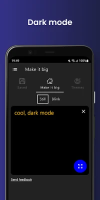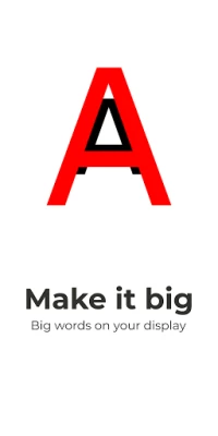 Make it big - Big or large text on your display is a great free app for communicating with other people in times when it is not possible to express yourself speaking. With Make it big - Big or large text on your display you can show large text on your smartphone which will resize itself automatically based on the amount of big text being entered. Make it big - Big or large text on your display was specifically developed to show people that are hard of hearing what the user is saying. Whether from across the room or side by side, Make it big - Big or large text on your display can help show what you have to say.