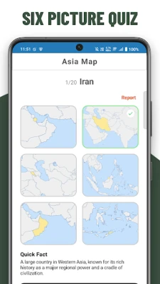 Challenge your memory and visual recognition skills with various quiz formats, including Single Picture, Four Picture, and Six Picture quizzes. Each mode offers a unique way to test your knowledge and keep the learning process exciting.