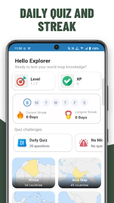 Stay engaged and motivated by participating in the daily challenge. Earn streak rewards for consistent play, encouraging you to make geography a part of your daily routine.