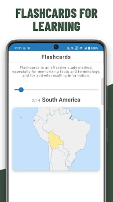 Utilize flashcards to study maps and memorize locations at your own pace. This feature is perfect for reinforcing your knowledge and ensuring long-term retention.