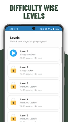 Progress through the app by unlocking different stages, ranging from beginner to expert. This tiered approach allows you to build your skills gradually and confidently.