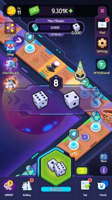 Each turn in Mars2049 begins with a roll of the dice, propelling you across the game board. Every space presents new opportunities or challenges, ranging from resource collection to critical expansion decisions. The cash and resources you accumulate form the backbone of your burgeoning colony. Your strategic choices regarding building upgrades and route planning will dictate the pace and success of your settlement's development.