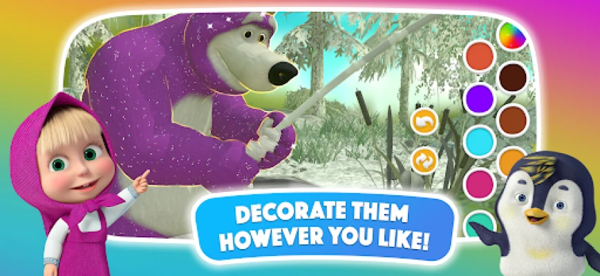 Step into the enchanting universe of Masha and the Bear, where your child can immerse themselves in a world of creativity and fun. This interactive app offers 20 delightful activities, including 15 vibrant scenes and 5 engaging mini-games inspired by the beloved animated series. Kids can unleash their imagination by coloring and animating scenes, or they can dive straight into the games they've crafted.