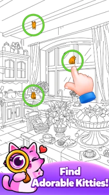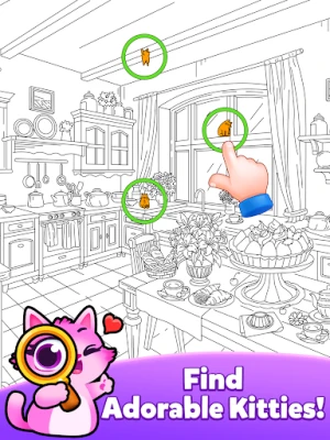 Take a delightful break from tile matching with engaging hidden object scenes. In these mini-games, you’ll search for black and white cats cleverly concealed within whimsical line drawings. This feature adds an extra layer of fun and variety to your gaming experience.