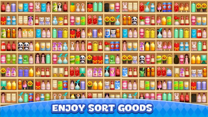 - Effortless Sorting: Navigate through expansive shelves and match identical 3D items to complete triple matches. The controls are user-friendly, making the sorting process a breeze.