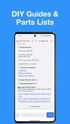 Generate and export professional PDF repair reports, perfect for insurance claims, used car sales, or personal maintenance tracking.