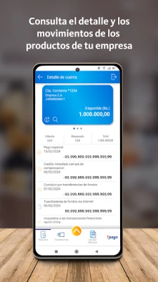 Stay informed about your financial status by easily checking the details of your transactions and available balances across all your accounts. Mercantil Móvil Empresas provides a user-friendly interface that allows you to access this information quickly, ensuring you are always aware of your financial standing.
