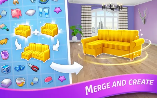 In Merge Design, gameplay is not just about matching items; it’s about evolution. When you merge two identical items, they don’t simply vanish. Instead, they upgrade and transform into valuable tools and decorative pieces that aid in your quest to repair and beautify the house. This unique mechanic keeps the gameplay engaging and rewarding, as each merge brings you closer to your design goals.