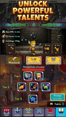 As you progress, earn Prestige to reset your journey and gain Talent Points. Use these points to upgrade your extensive Talent Tree, making your army permanently stronger and more resilient!