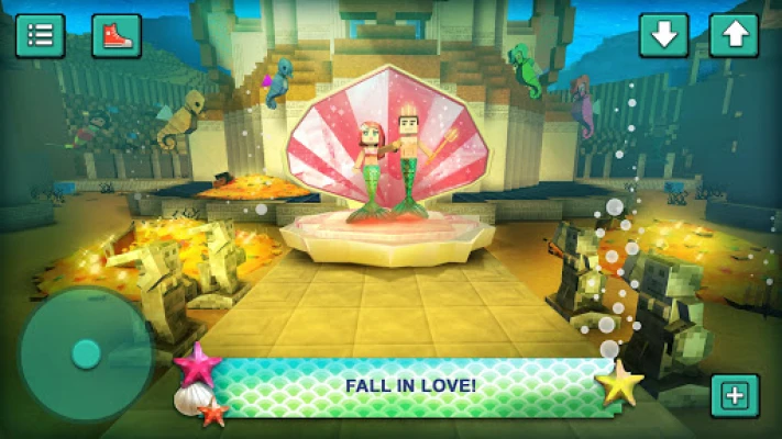Mermaid Craft offers an expansive world that promises endless hours of creativity and fun. As you navigate through the vibrant underwater city, gather resources to craft and build your own unique blocky cube structures. Design your dream home on a colorful coral reef, using shells and seaweed to decorate your rooms just like in a classic house-building game. Host fabulous house parties and invite your friends to join in the fun—every mermaid princess deserves a celebration!