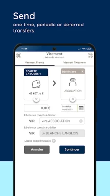 With the Mes Comptes Pro CCF app, transferring funds to internal or external accounts is a breeze. The user-friendly interface simplifies the process, making it quick and efficient to manage your finances.