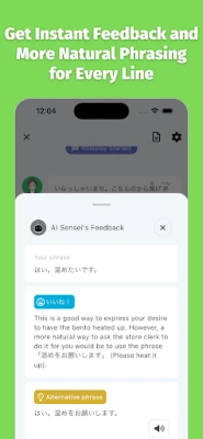 Don't just speak—improve your skills! Meshclass offers instant feedback on your pronunciation and grammar. Each sentence you practice receives corrections and suggestions for more natural phrasing, helping you sound like a native speaker in no time.