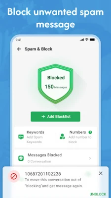 Take decisive control of your inbox with MessageOne's sophisticated spam filtering system. Our technology effectively blocks nuisance messages, allowing you to manage your custom blocklist with ease. Utilize powerful keyword filtering to automatically screen unwanted promotions or junk messages based on terms you define, ensuring a cleaner and more efficient messaging experience.