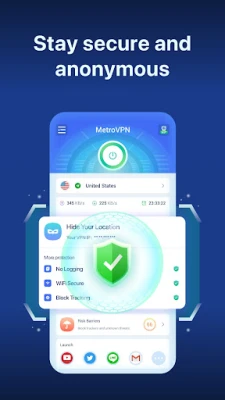 MetroVPN excels in providing anonymous surfing capabilities. By concealing your IP address and encrypting your internet traffic, it ensures that your sensitive information, such as passwords and personal data, remains protected. This is particularly vital when using public or unsecured Wi-Fi networks, allowing you to surf the web without the fear of being monitored or tracked.