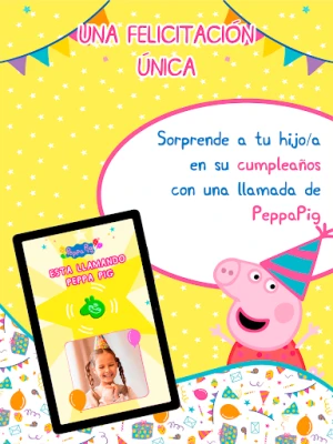 En esta divertida app infantil, puedes programar una llamada personalizada de Peppa Pig para que tu pequeño/a reciba una felicitación de cumpleaños única y personalizada de su personaje de dibujos favorito.