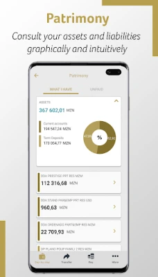 With the Patrimony feature, users can visualize their assets and liabilities in a clear and intuitive manner. Simply click the Patrimony button located below the product carousel to access this insightful overview.