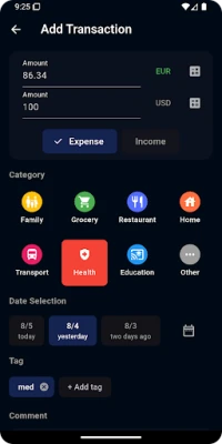For those who travel frequently or manage international income, our app supports multiple currencies. Easily track your finances in different currencies while staying updated with real-time exchange rates. This feature simplifies financial management for globetrotters and expatriates alike, making it easier to keep your finances organized no matter where you are.