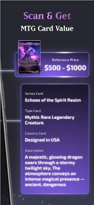 - Explore Card Details: Access detailed information about the scanned card, including its market value and rarity.