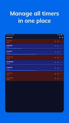 Multi Timer boasts a clean and user-friendly interface designed for efficiency. With intuitive controls, users can effortlessly create, start, reset, and manage various timers all in one place. This eliminates the confusion often associated with juggling multiple timers, allowing you to focus on what truly matters.