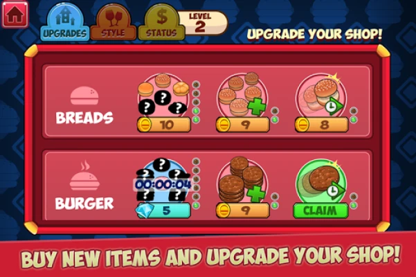 In My Burger Shop, providing efficient service is key to earning coins. These coins are essential for purchasing new ingredients and customizing your restaurant. Transform your shop by painting the walls, changing the flooring, and buying new trays and lighting. The more you serve, the more you can unlock new ingredients, allowing you to create even more delicious burgers and expand your business.