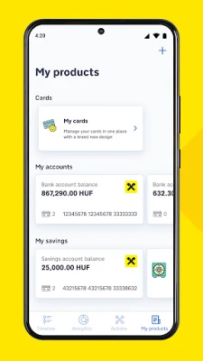 - All Accounts in One Place: Manage all your Raiffeisen bank accounts, debit cards, credit cards, and term deposits from a single platform.