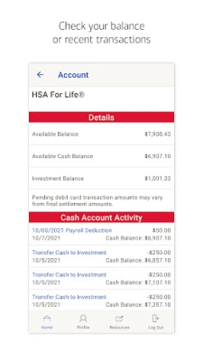 For those with a Health Savings Account (HSA), the app allows you to view, contribute, and distribute transactions effortlessly. You can pay bills from any account and add payees, simplifying your financial management.