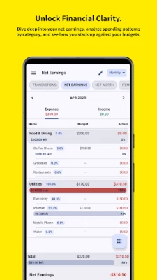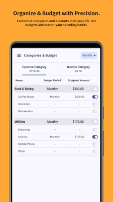 Creating and managing a budget has never been easier. MyMoney Tracker allows you to set realistic monthly or yearly budgets for main categories or specific sub-categories. You can visually track your spending against your budget goals in the Net Earnings section, ensuring you stay on track. The flexibility to activate or deactivate budgets as needed means you can adapt to changing financial circumstances without hassle.