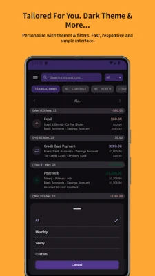 MyMoney Tracker offers a range of flexible features to suit your preferences. You can set your default currency and toggle symbol visibility according to your needs. Choose from light, dark, or system default themes to customize your experience. Plus, the ability to import transaction data from CSV files and export your complete transaction history to CSV ensures that you can manage your finances in a way that works best for you.
