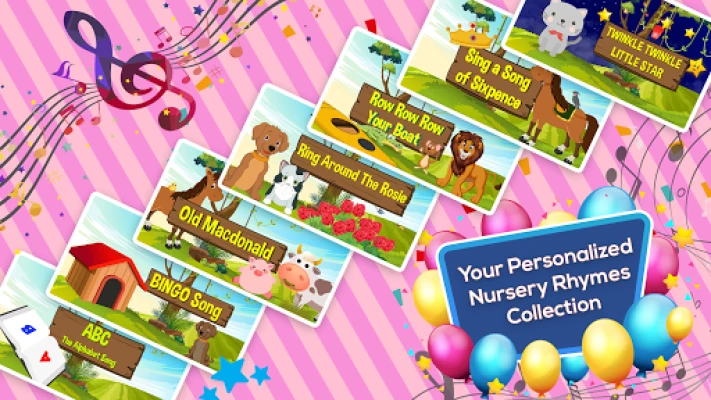 The app features a delightful collection of classic nursery rhymes that have been cherished by generations. Your child can experience the joy of being the star in these timeless songs: