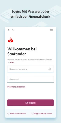 Logging into the MySantander Banking App is both easy and secure. You can choose to use facial recognition with Face ID or access the app using your fingerprint via Touch ID. Alternatively, you can still log in using your username or email and password, ensuring flexibility and security.