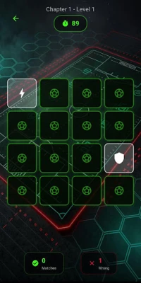 The visual design of Neon Match is nothing short of a masterpiece, showcasing a captivating cyberpunk aesthetic. Dark backgrounds adorned with glowing neon grid patterns evoke the ambiance of a high-tech football arena. Smooth card-flipping animations bring the memory matching mechanics to life, while vibrant green effects highlight successful matches and striking red effects indicate incorrect attempts. The game's interface utilizes the Orbitron font to maintain its futuristic feel, ensuring that every element is meticulously crafted to create an energetic and modern gaming atmosphere that stands out in the mobile gaming landscape.