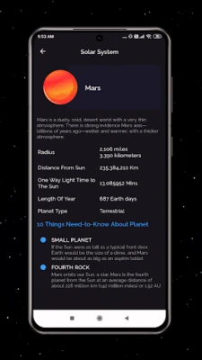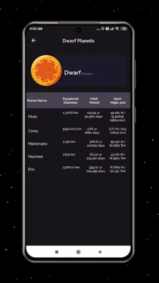 Delve into the fascinating world of our solar system's planets and dwarf planets. Night Sky View provides detailed insights into their characteristics, composition, and unique features. From the scorching surface of Mercury to the icy realms of Pluto, our app offers comprehensive information about each celestial body.