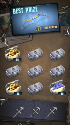 Ninja Hunt features an extensive weapon system categorized into two primary types: bows and crossbows. Currently, there are 34 different models available, each offering distinct performance characteristics and tactical roles. Players can unlock new gear by completing specific stages and can upgrade their weapons to enhance damage, increase arrow capacity, and improve firing rates. This customization allows players to forge a unique arsenal tailored to their combat style.