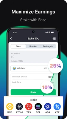 With NOW Wallet, you can watch your assets grow through effortless staking. Supported assets include Cardano (ADA), Tron (TRX), Solana (SOL), Tezos (XTZ), and Cosmos (ATOM). Staking has never been easier, enabling you to earn passive income while holding your favorite cryptocurrencies.