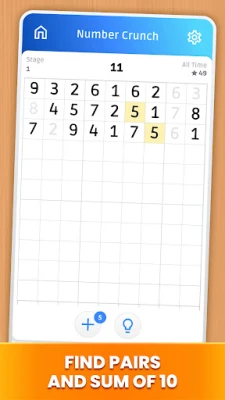This classic numbers game, often referred to as "make ten," "collect ten," "numbers," "seeds," or "column," is perfect for anyone who enjoys number puzzles. If you find joy in Sudoku, traditional crosswords, or Japanese crosswords, then Number Clash is the ideal app to boost your brainpower during your leisure time. The unobtrusive music and pleasant graphics create a relaxing gaming experience that keeps you engaged.