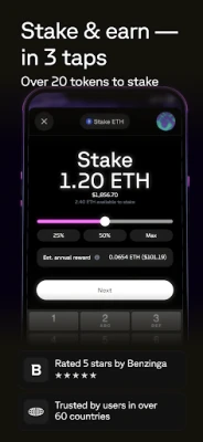 Put your idle coins and tokens to work with Omni's streamlined earning features. Stake, lend, or deposit your digital assets into yield vaults to enjoy high annual percentage rate (APR) rewards. The intuitive interface allows you to start earning in just three taps, and you can withdraw your crypto at any time, hassle-free.