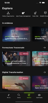 But the learning experience doesn’t stop there! In the "Explore" section, we invite you to immerse yourself in our rich catalog of content. Browse through engaging carousels and cards filled with courses, tutorials, and educational resources designed to inspire you to explore new passions and acquire new skills.