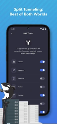 OrcaVPN simplifies your online experience with its one-click connect feature. With just a single tap, you can establish a secure connection to the internet. Additionally, the split tunneling option allows you to customize your online experience by choosing which apps use the VPN and which can connect directly to the internet. This flexibility ensures that you can optimize your bandwidth and maintain speed where it matters most.