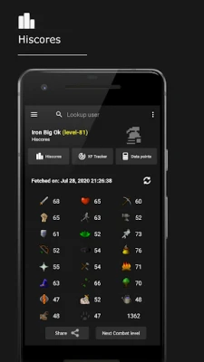 Stay ahead of the competition by effortlessly checking your hiscores. Whether you’re a regular player, an Ironman, an Ultimate Ironman, or a Hardcore Ironman, our app provides detailed insights into your performance. Monitor your progress and see how you stack up against your friends and the broader OSRS community.