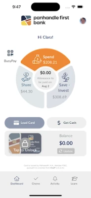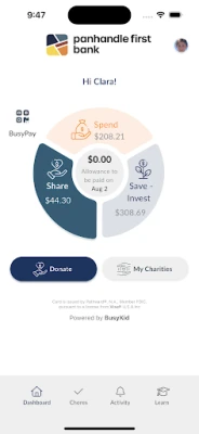 This program is offered through Panhandle First Bank in collaboration with BusyKid. The BusyKid Visa® Prepaid Card is issued by Pathward®, N.A., a member of the FDIC, under a license from Visa U.S.A. Inc. This card can be used wherever Visa® debit cards are accepted, and all cardholder funds are insured by the FDIC, adhering to applicable terms and conditions. For detailed information about card terms, including the VISA® Zero Liability policy, please visit our website.